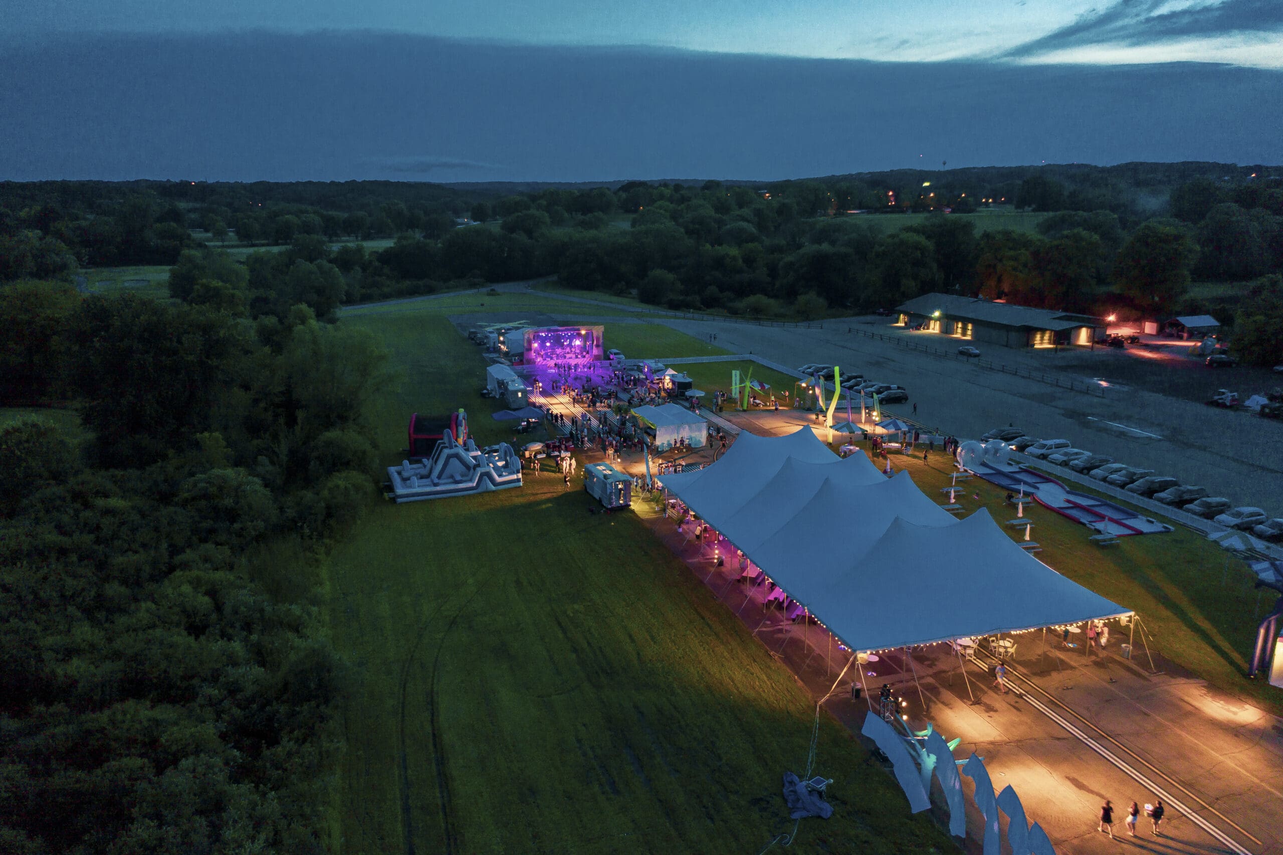 As for the weekend overview, we kicked things off with a relaxing Welcome Reception on the grassy hillside completed with an acoustic duo, fire pits, lawn games, a delicious dinner menu, and bar with a signature cocktail and mocktail. Guests spent the next morning enjoying their activities of choice before they went over to the private Street Festival inspired concert on a Private Airport Runway. Closing down the airport runway and bringing in 10 Food Trucks, a carnival area with inflatables and games, an SL250 stage with rotating bands, building an oversized tent with lounge seating, cooling stations, custom lighting, and great food gave something for everyone. To top off the weekend, guests were able to head over to the game room for a custom arcade and Live Band Karaoke!