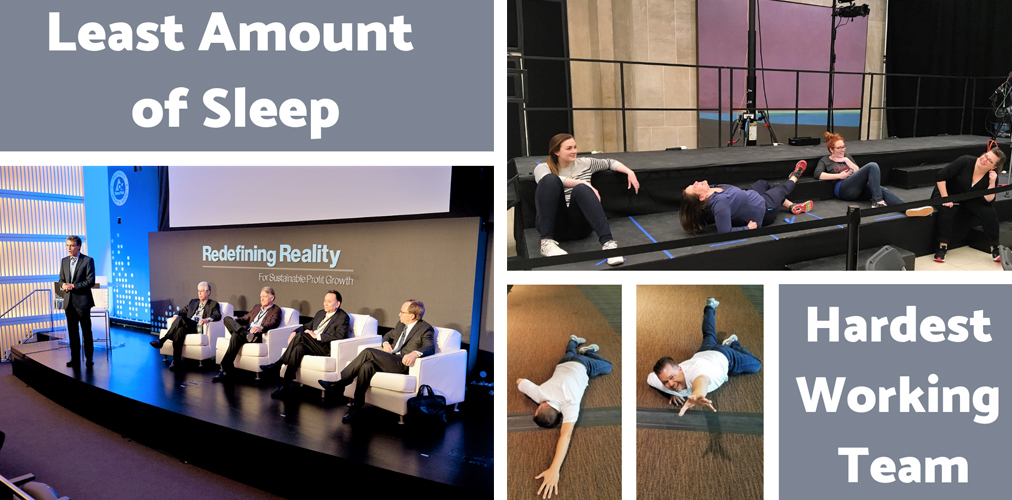 Left Photo: 22 hours – the least amount of sleep during a multi-day conference over a period of 6 nights (Tetra Pak, Washington DC)